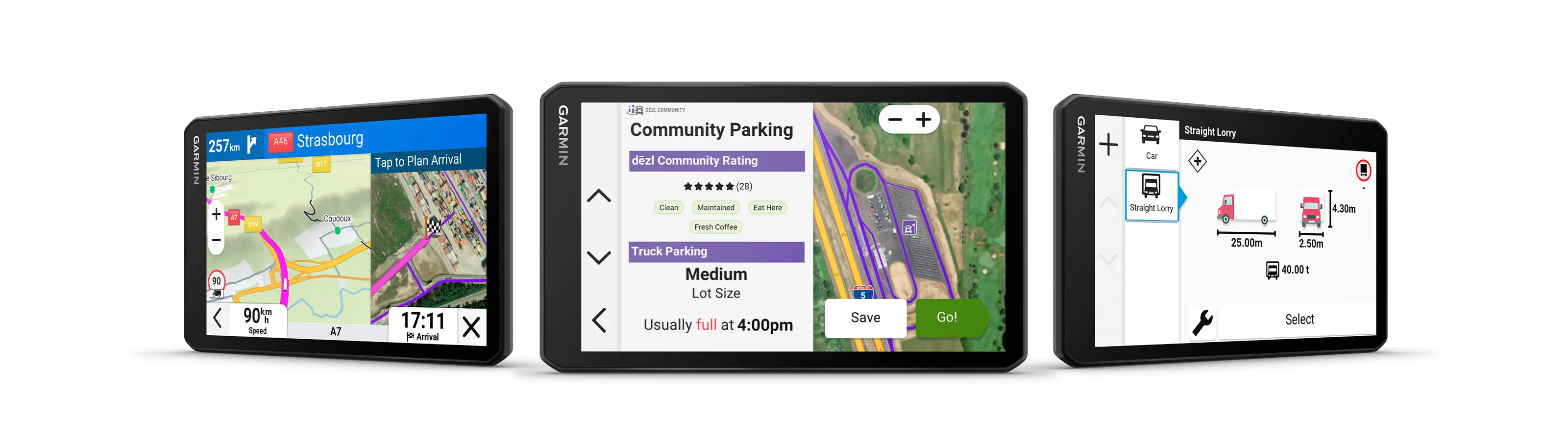 Za profesionalne vozače kamiona koji žele pojednostaviti život na drumu, uređaji za satelitsku navigaciju 7″ dēzl LGV720 nude dragocene funkcije dēzl zajednice1. Osigurajte brzi uvid u vezi parkirališta, mesta za utovar i drugih lokacija za kamiondžije baziranim ocenama drugih vozača.