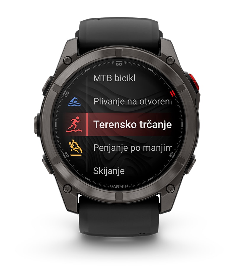 fēnix® 8 Pro koristi LTE mrežu, koja je dizajnirana za upotrebu manje energije kao i smanjenu potrošnju baterije sata, za duže i aktivnije avanture.